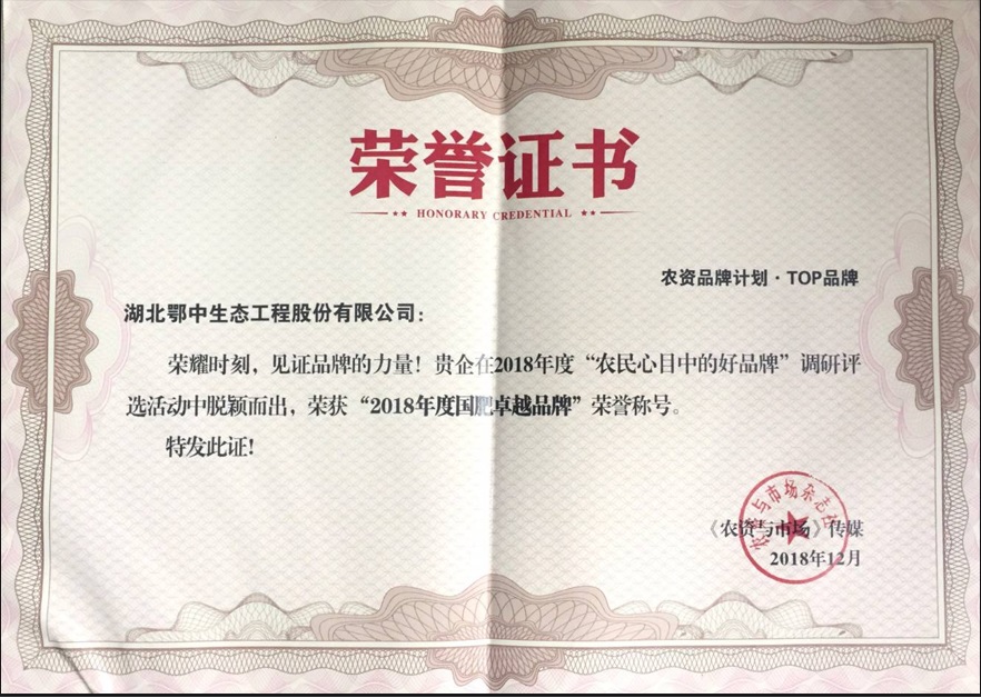 鄂中生態(tài)獲評“2021年度農(nóng)民心目中的好品牌”